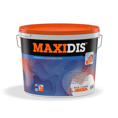 MAXIDIS je kvalitetna vodoperiva unutrašnja disperziona boja, na bazi akrilnih veziva. Dobro prianja za podlogu, ima odličnu pokrivnu moć, izrazitu belinu, paropropusnost i otpornost na vlažno brisanje. Namenjena je za zaštitu i dekoraciju unutrašnjih zidnih površina od: betona, produženog maltera, gasbetona, azbest-cementa, iverice. MAXIDIS se može nijansirati MAXI Color-om ili MAXIFAS Color-om, kao i na MAXIMIX sistemu.